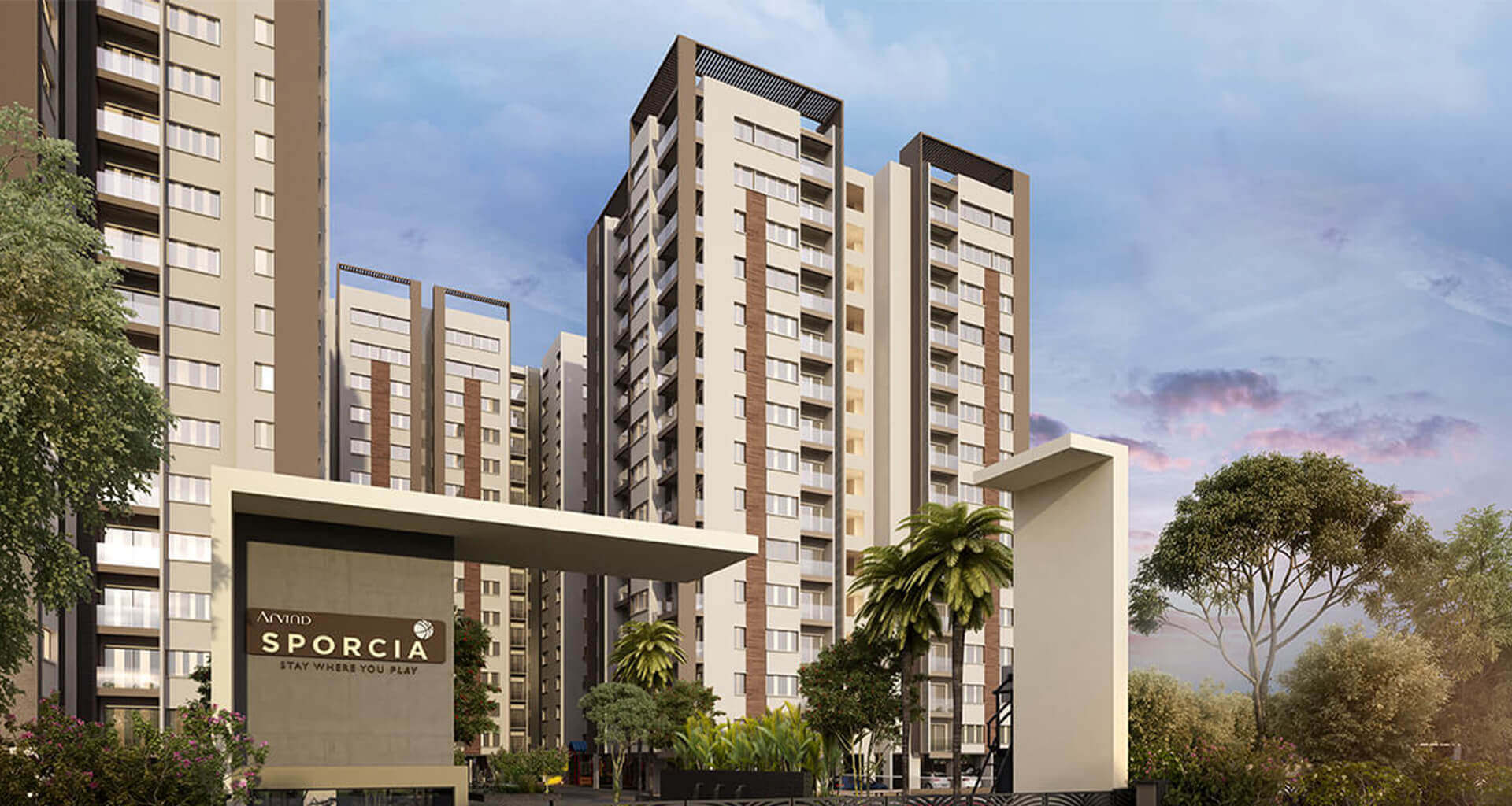 Arvind Sporcia is a newly launched residential apartment project located in Hebbal, Jakkur, Bangalore.This exclusive residential community offers the best in luxury living from Arvind SmartSpaces. The project features spacious apartments with premium finishes and amenities.