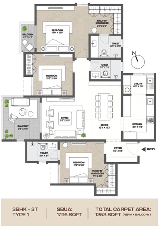 This residential development offers a premium living experience, showcasing the best of the Assetz Group’s luxury segment. The project features spacious 3 BHK Sky Residences, designed with elegant and high-end finishes.