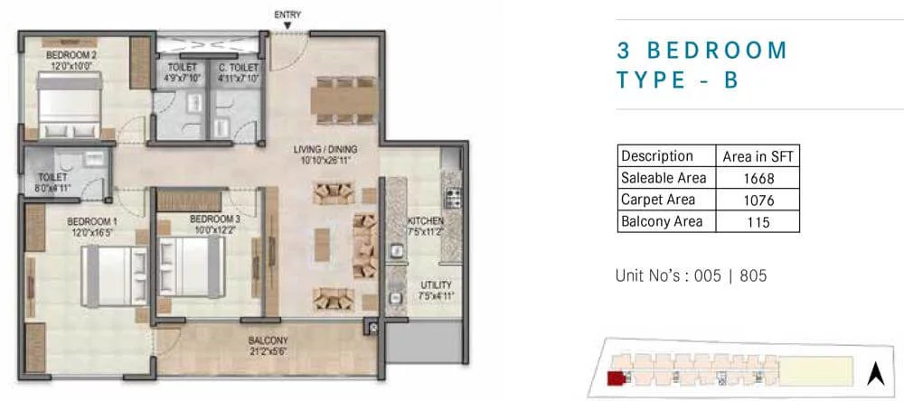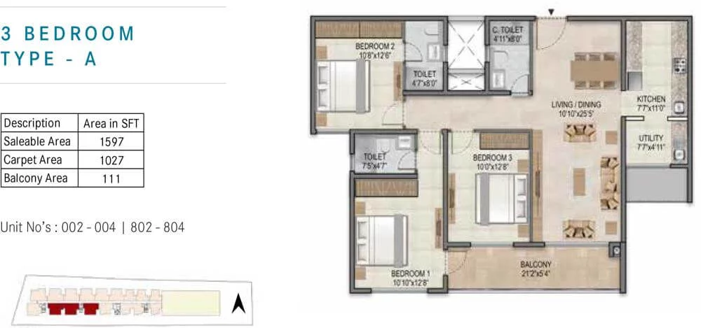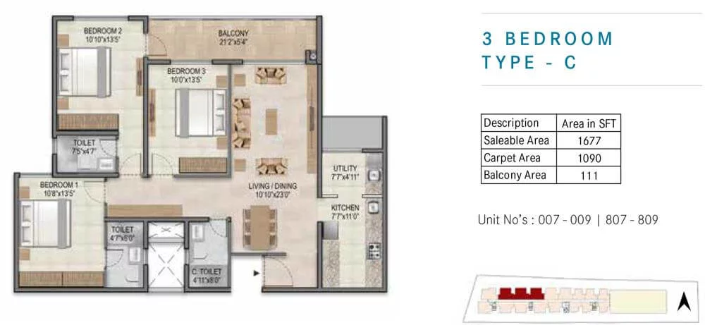3 BHK 1365 Rs. 1.12 Crore Onwards