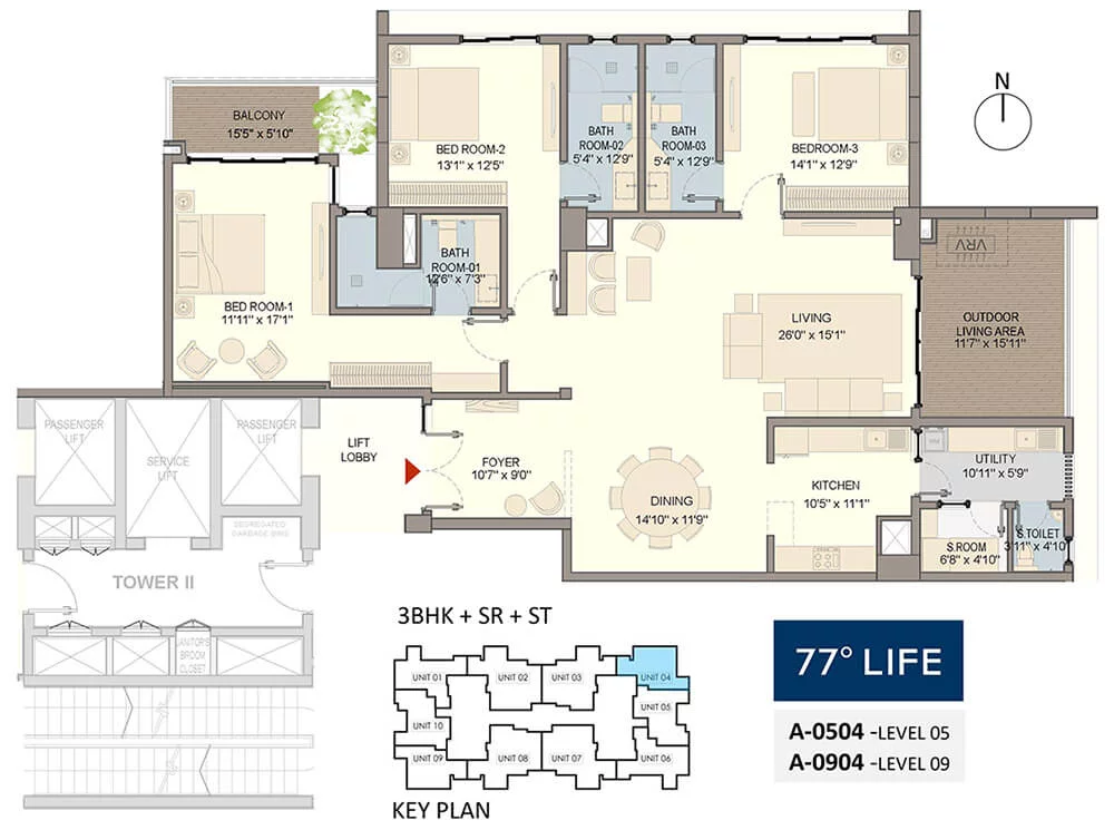 As a key component of the landmark Divyasree 77 Town Centre, Divyasree 77 Life offers the very best in DivyaSree’s luxury living segment. The project features spacious 3 and 4 BHK apartments, including Penthouses, with luxurious features throughout.