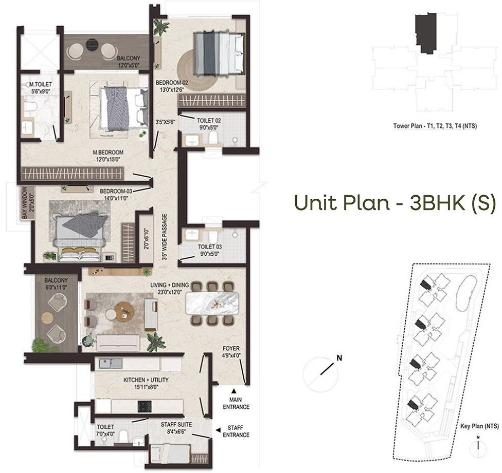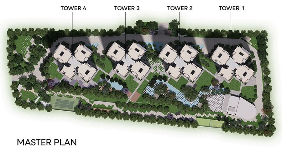 With 65% open spaces, beautifully curated landscapes, lush gardens, and a sprawling 4+ acre recreation zone, the project creates a refined and serene living environment in the middle of the city.