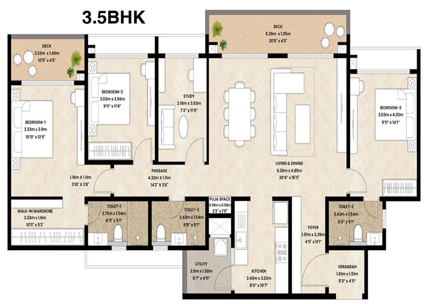 Set within beautifully planned surroundings, the project boasts nearly 75% open-to-sky spaces, lush landscapes, and abundant greenery, creating a calm and elevated living experience.