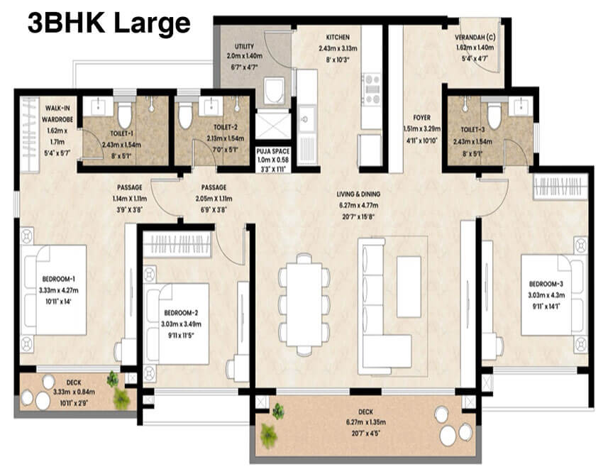Residents can enjoy an expansive 97,000 sq. ft. clubhouse along with landscaped gardens, a swimming pool, gymnasium, indoor recreation areas, multiple sports courts, entertainment zones, retail spaces, a crèche, children’s play areas, party halls, and round-the-clock security for a complete luxury lifestyle.