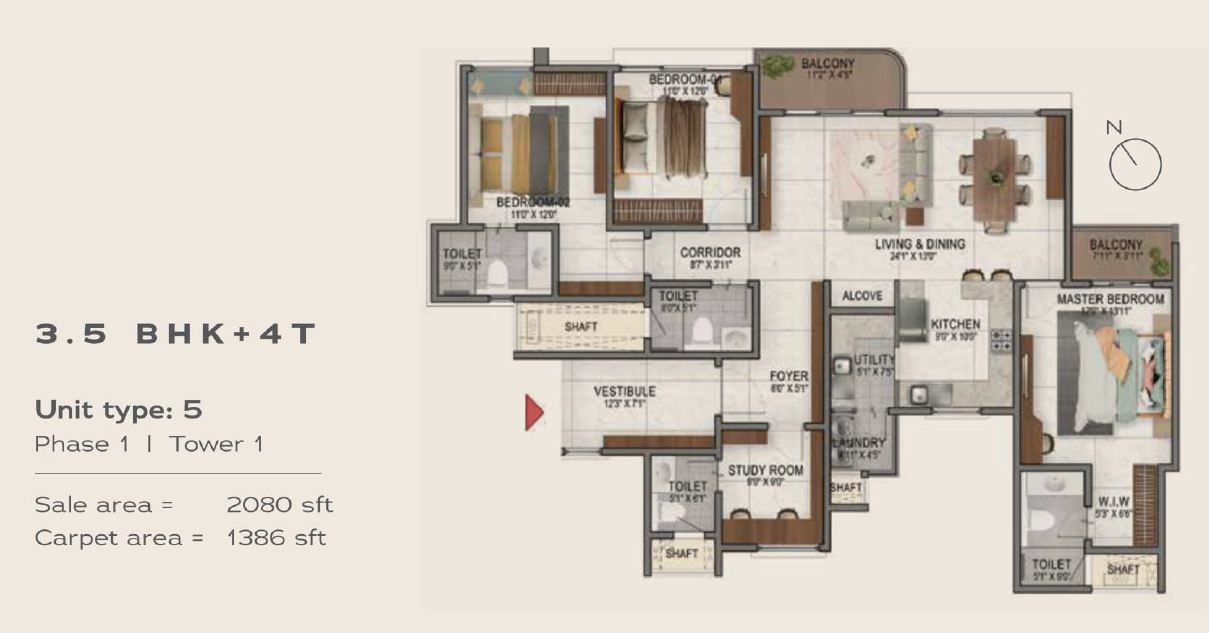 The enclave is surrounded by stunning landscapes, with over 80% of the area dedicated to open spaces, 5000+ native trees, and a magnificent 42-acre rejuvenated lake, making it an exceptionally elite living destination.