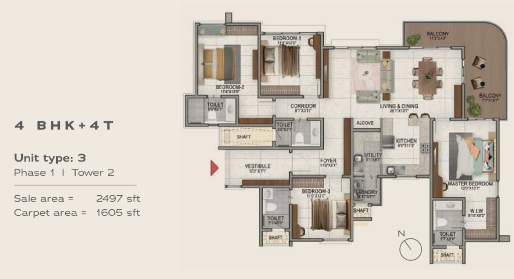 Spanning a vast 100 acres, with 75 acres dedicated exclusively to residential development, Nambiar District 25 offers the finest in Nambiar Builders’ luxury segment. The project features spacious 2, 2.5, 3, 3.5, and 4 BHK homes, with just four units per floor and four elevators per tower, ensuring comfort and exclusivity, all enhanced by luxurious features.
