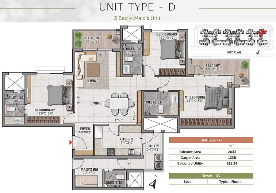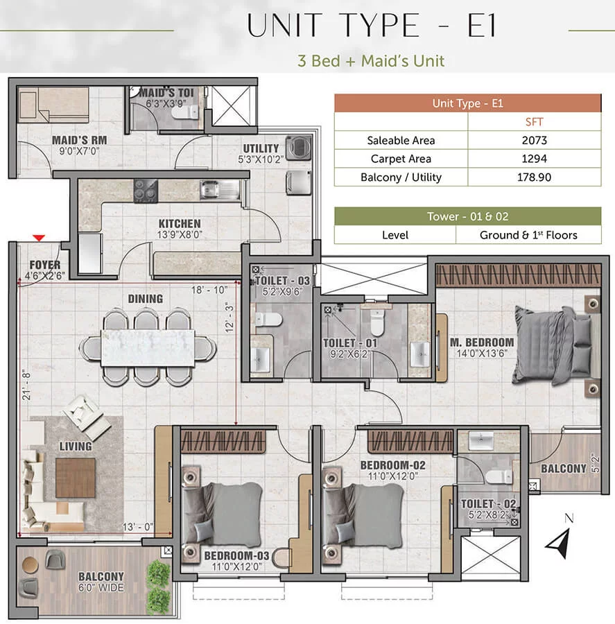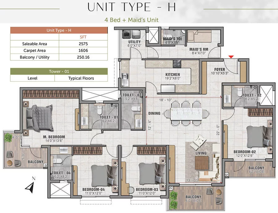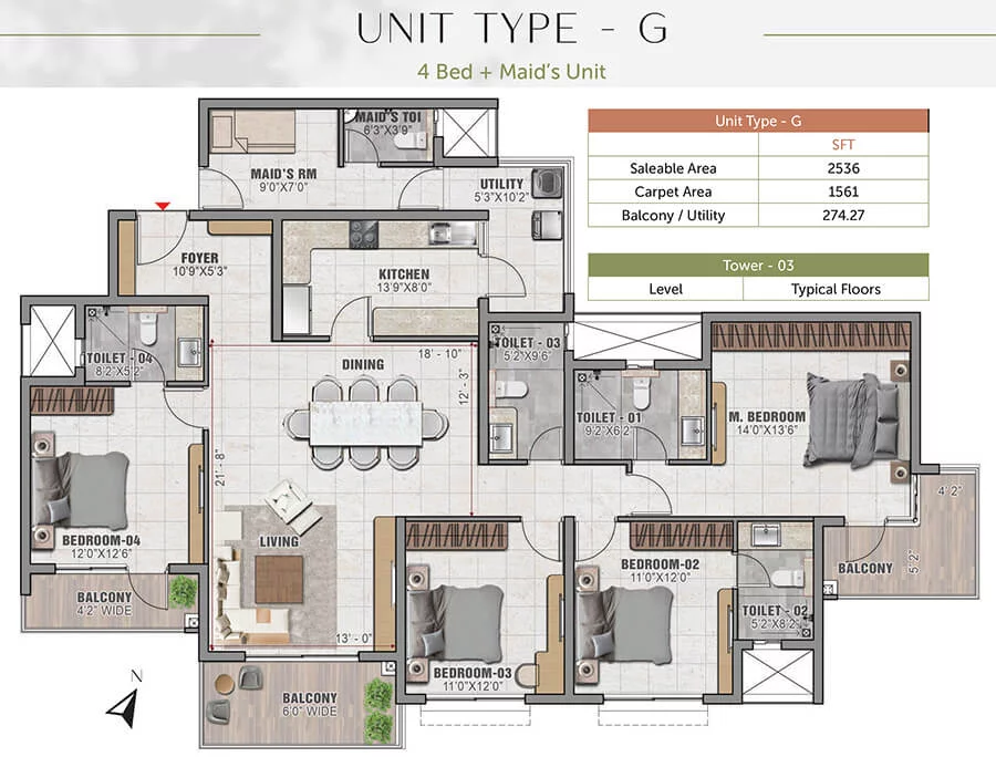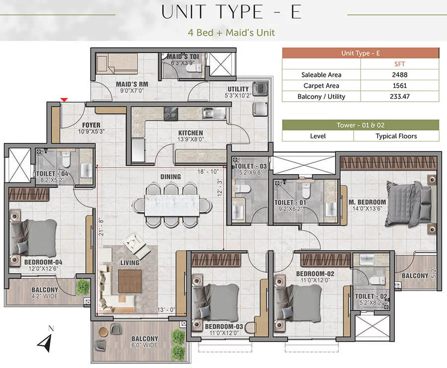 The project offers spacious 3,4 BHK Apartments with luxurious features. Beautiful landscapes, plenty of open spaces, and serene all around make Prestige Elm Park more special & Elite.