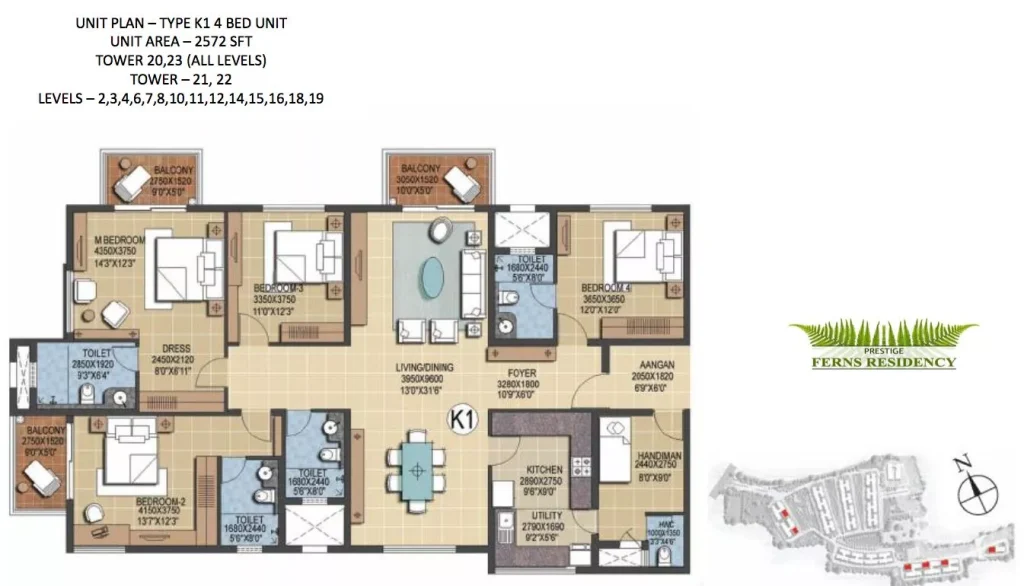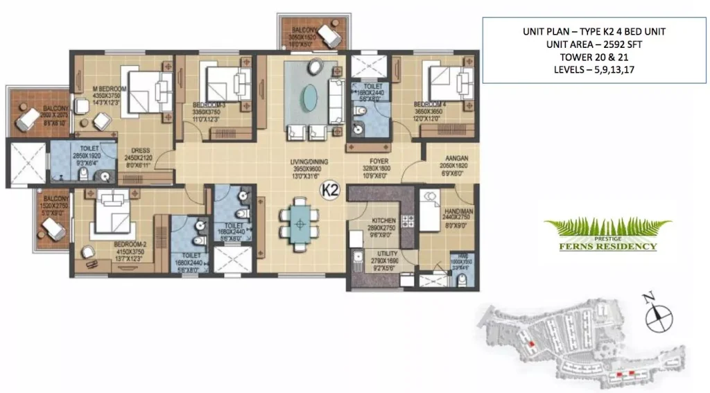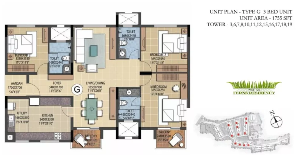 The builder ensures a high-quality living experience for the Haralur Road community, combining brilliant architecture with a luxurious lifestyle at Prestige Ferns Residency.