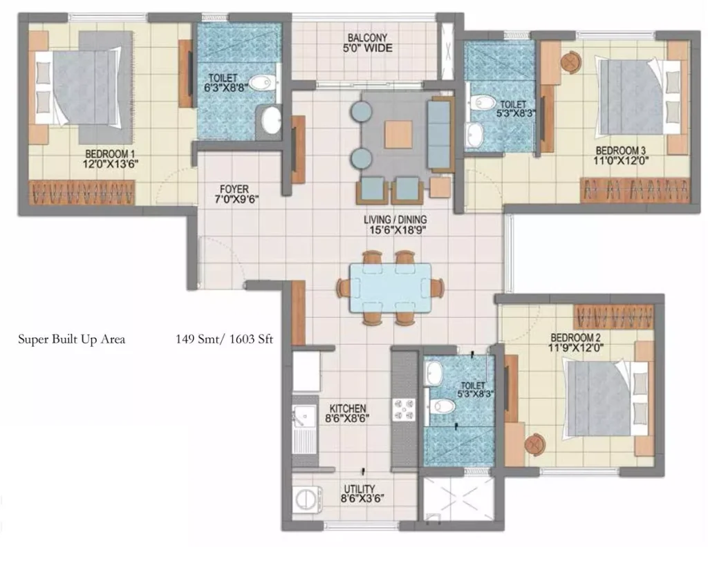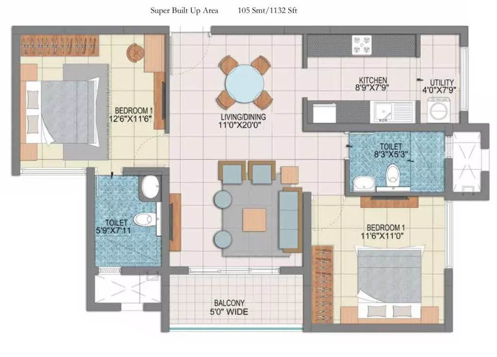 The project boasts a wide range of amenities, including a fully equipped clubhouse, health center, gym, swimming pool, recreational rooms, outdoor sports courts, children’s play area, party hall, and much more. With meticulous planning and round-the-clock security, Prestige Fontaine Bleau is an ideal choice. Prices for this luxury development start at 83 Lakhs and are a worthwhile investment.