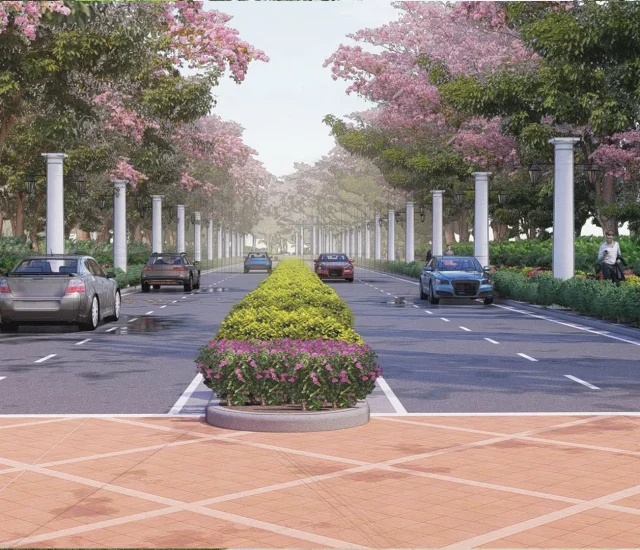 Avenue plantation along internal and public roads with low-maintenance plants.