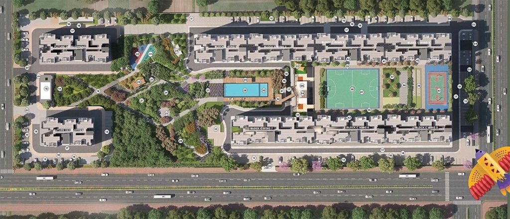 Amenities at Provident Ecopolitan include a fully equipped clubhouse, landscaped gardens, gymnasium, swimming pool, recreation rooms, outdoor sports courts, children’s play area, AV room, party hall, and 24/7 state-of-the-art security, all meticulously planned for modern and secure living.