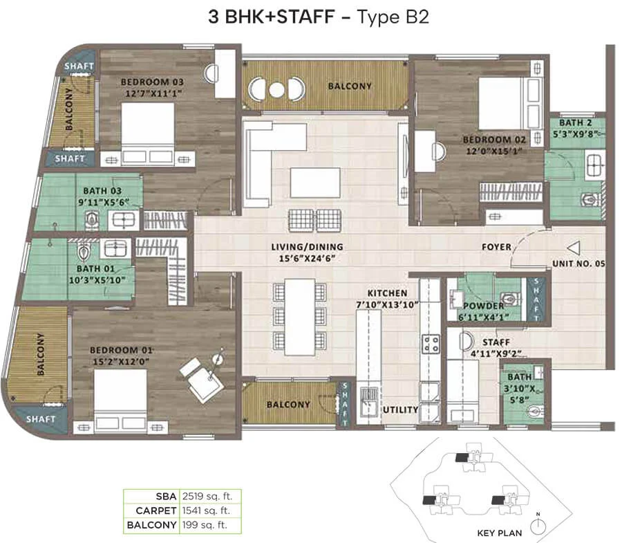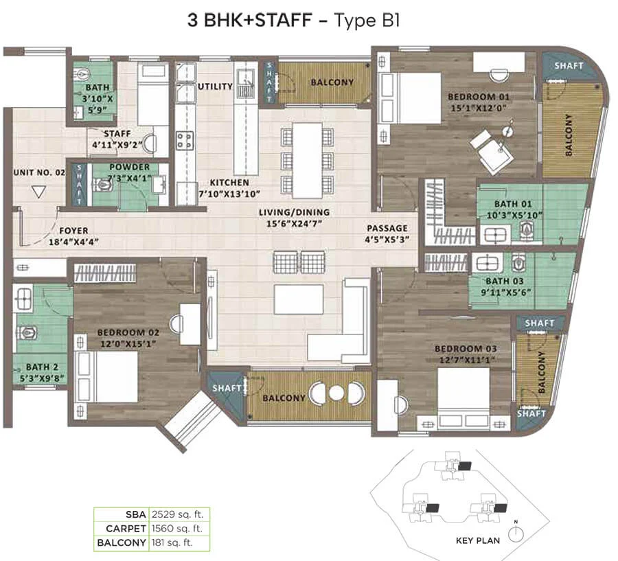 Sattva Aaranya is designed to offer spacious, Vaastu-compliant homes with excellent ventilation and natural light. The project consists of three high-rise towers, ensuring privacy, comfort, and premium living with high-quality specifications.