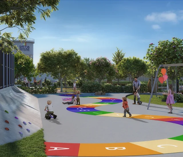 The development is enhanced by beautiful landscapes, abundant open spaces, and reflexology gardens, adding an elite touch to the living experience at Sattva Bhumi Plots.