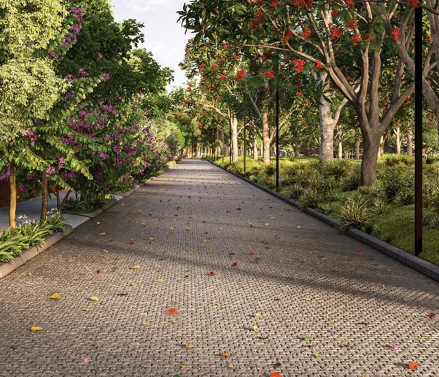Surrounded by beautifully designed landscapes, the project features over 70% open spaces, lush gardens, curated lawns, pet parks, and abundant greenery, creating a serene and elevated living environment.