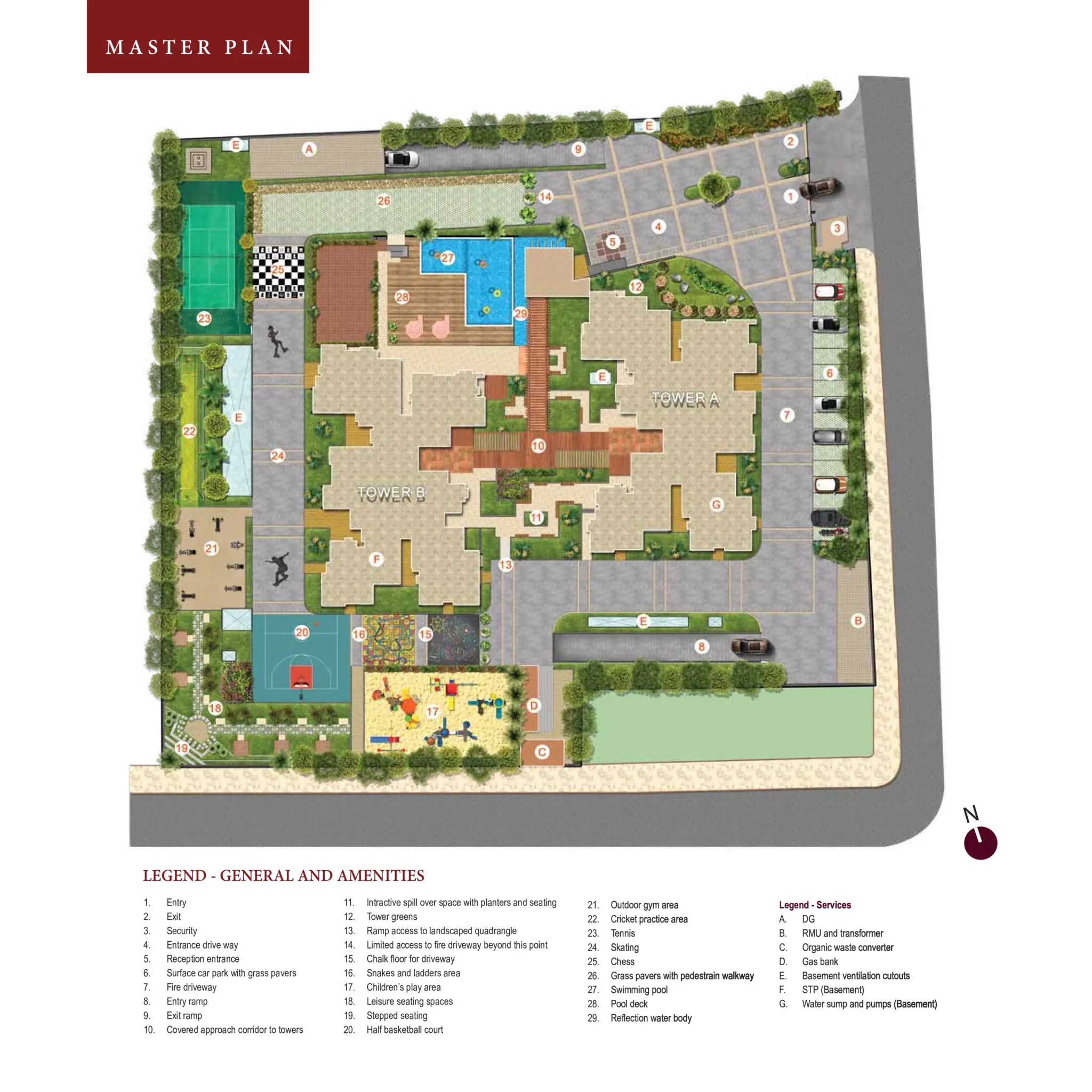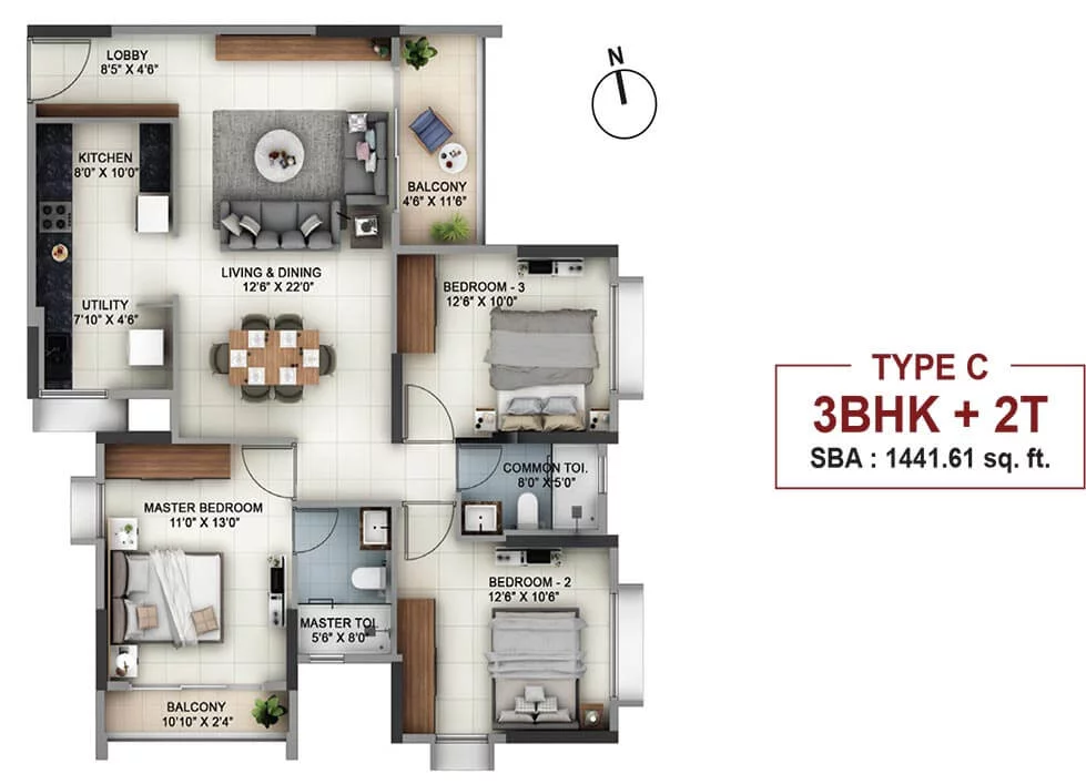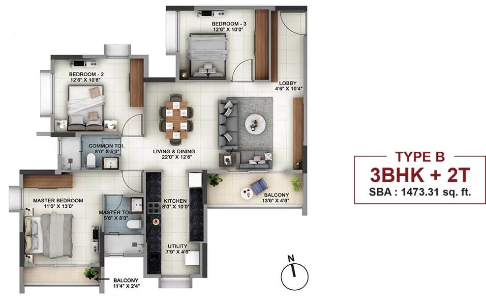 Amenities at Salarpuria Sattva Signet include a fully equipped clubhouse, landscaped gardens, a gymnasium, a swimming pool, recreation rooms, outdoor sports courts, a children’s play area, a party hall, and top-notch 24/7 security.