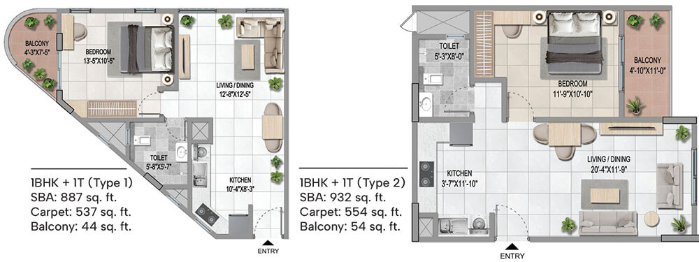 1 BHK 887 Rs. 1.0 Crore Onwards