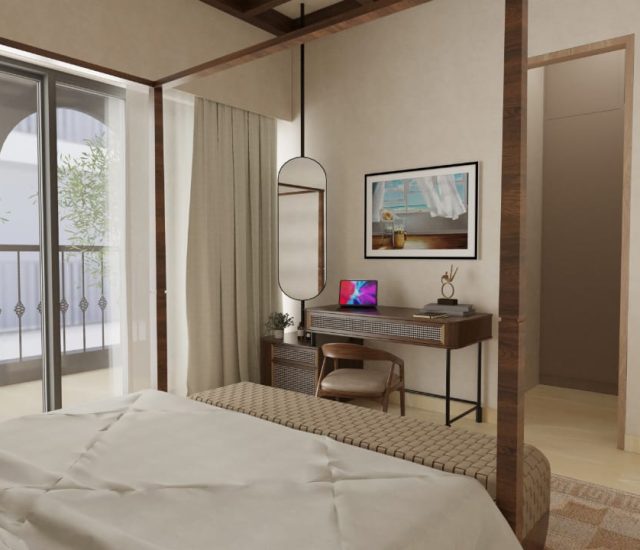 Marble flooring & wooden accents for timeless sophistication