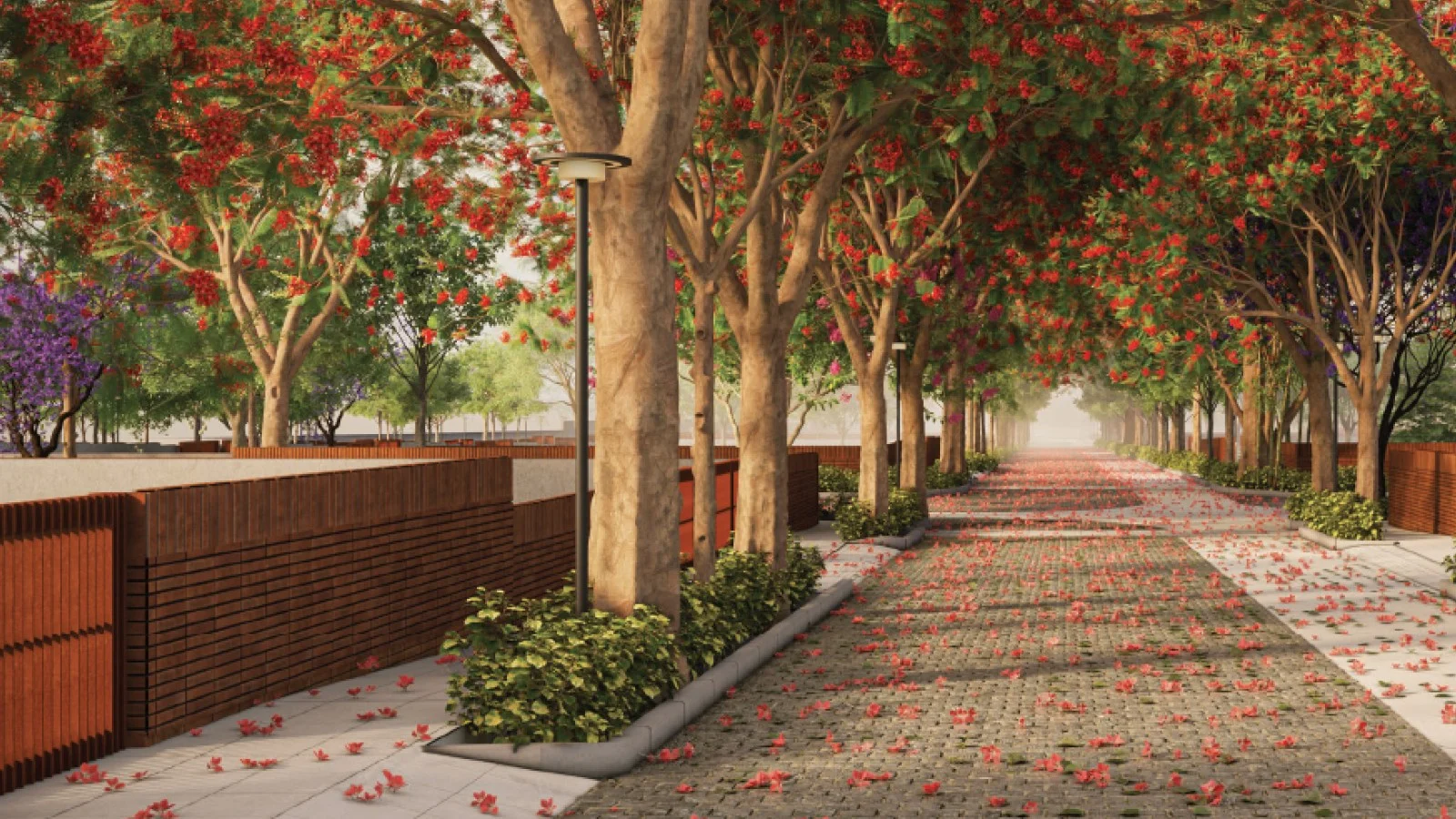 The development features spacious plots of 1200, 1500, and 2400 square feet, all designed with luxurious amenities. Residents will enjoy beautifully landscaped areas, a tree museum, expansive open spaces, an 8+ acre eucalyptus forest, a central boulevard, and vibrant green surroundings, making it a unique and prestigious community.