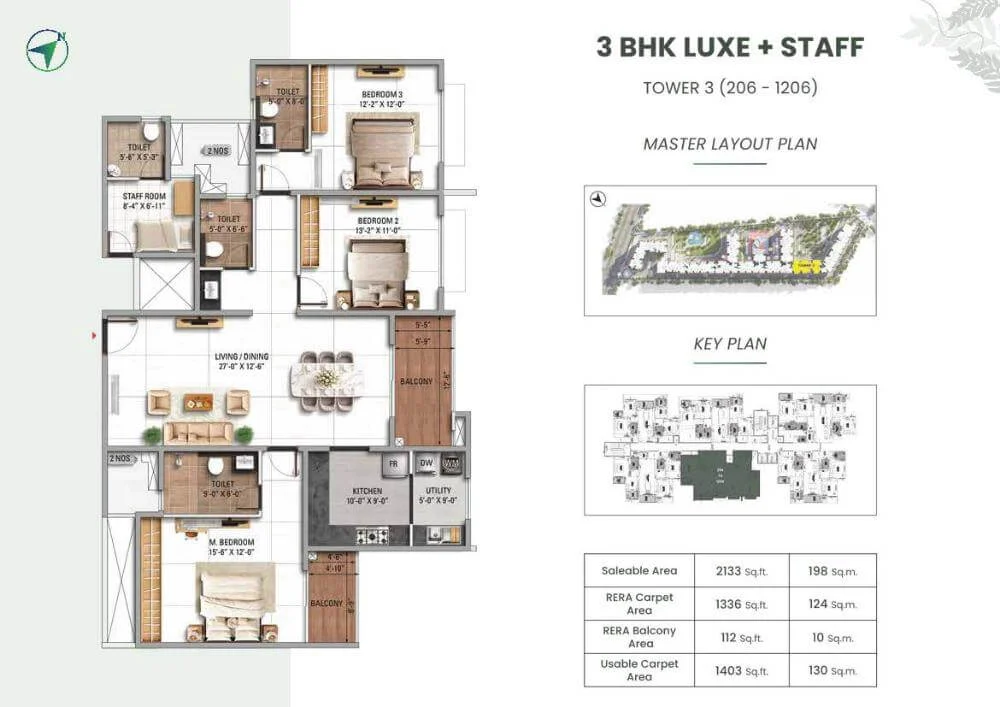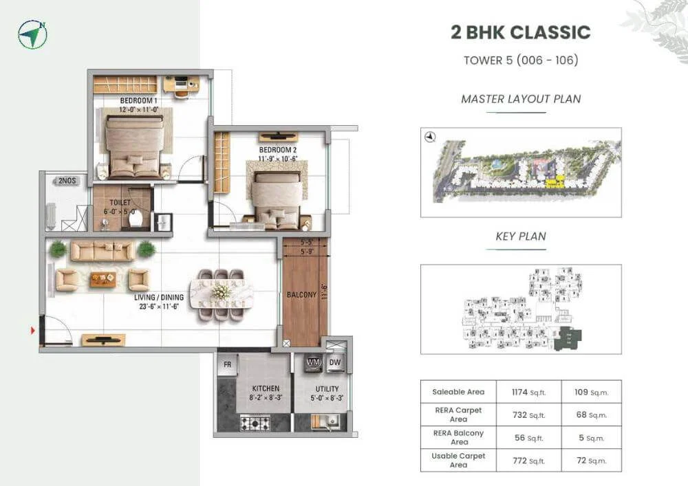 The project offers 30+ modern amenities including two lavish clubhouses spanning 29,000 sq. ft., landscaped gardens, two gymnasiums, two swimming pools, rooftop sky cinemas, a mini theatre, café, health center with spa and salon, recreation rooms, multiple sports courts, children’s play areas, three multipurpose party halls, and advanced 24/7 security systems for a complete and comfortable lifestyle.