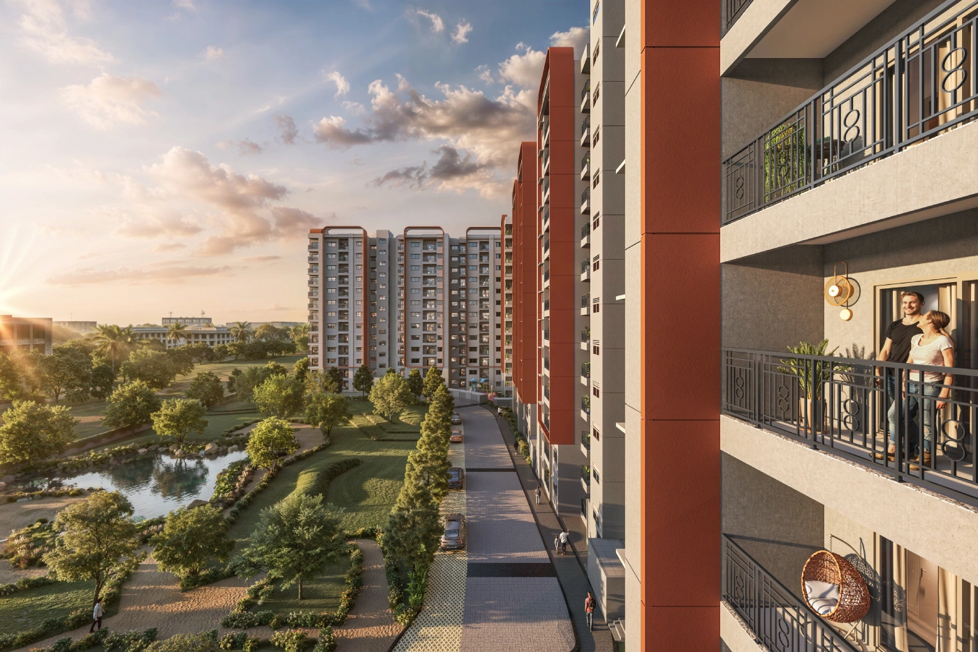 Developed by TVS Emerald, the project promises a high-quality lifestyle with nature-inspired contemporary architecture in the rapidly growing locality of Sathanur near Thanisandra Road.