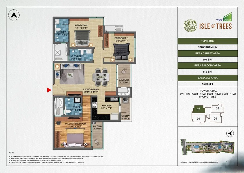 TVS Emerald Isle of Trees offers over 40 amenities, including a fully equipped clubhouse, landscaped gardens, gymnasium, swimming pool, recreation rooms, outdoor sports courts, children’s play area, party hall, and state-of-the-art 24/7 security measures.